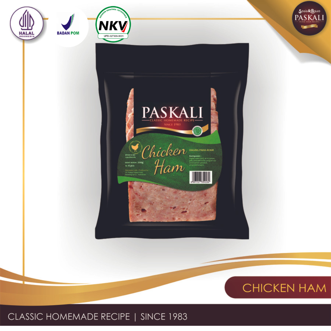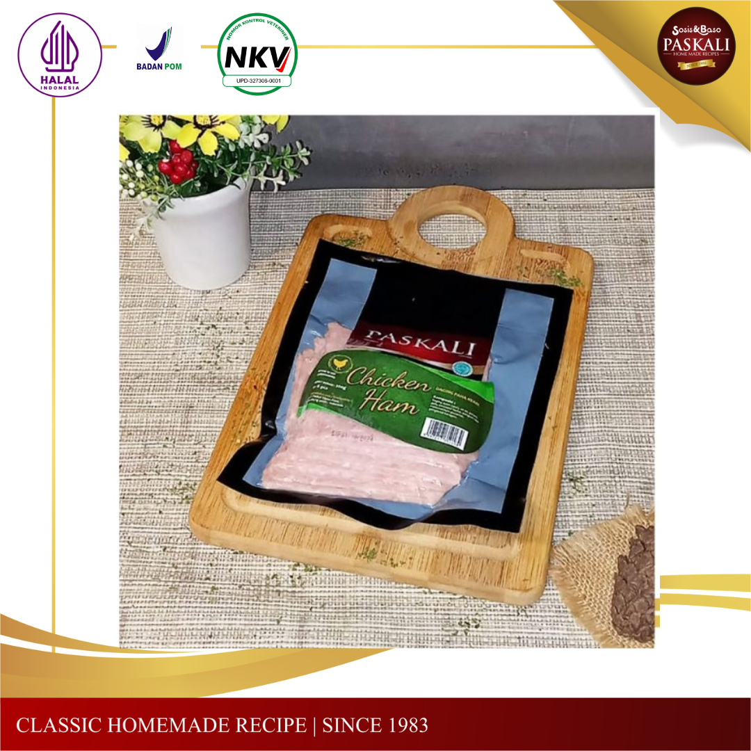 Chicken ham dibuat dengan cara direbus terlebih dahulu disertai dengan bumbu klasik Paskali.