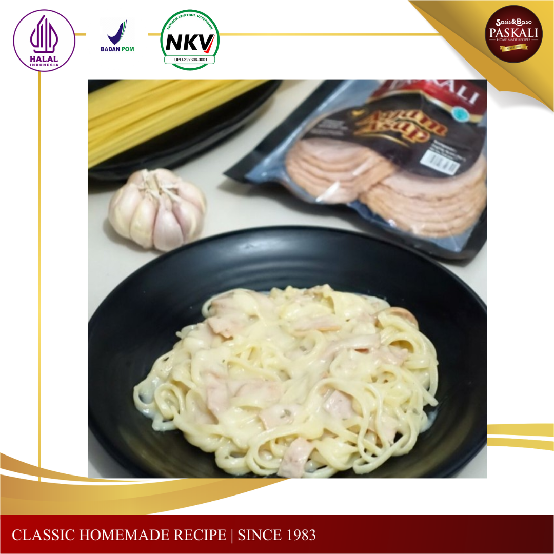 Smoked chicken sliced terbuat dari daging ayam pilihan yang diolah secara higienis dan dibumbui oleh rempah pilihan Paskali kemudian diasap.
