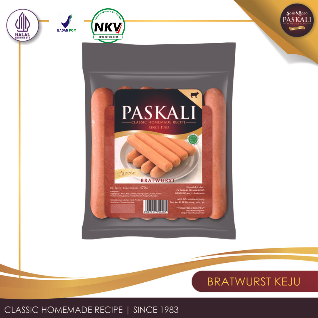 Sosis Bratwurst Cheese Paskali terbuat dari cincangan daging dan bumbu halus, dengan isian keju yang menggoda.
