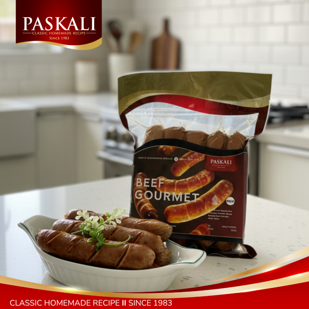 Produk unggulan dari Paskali ini dibuat dari 100% daging sapi pilihan dengan kandungan tepung yang sangat minimal, sehingga menghasilkan tekstur padat dan rasa mantap di setiap gigitan. Tanpa tambahan pewarna, tanpa nitrat dan nitrit, sosis ini menjadi pilihan cerdas bagi keluarga yang peduli terhadap kesehatan.